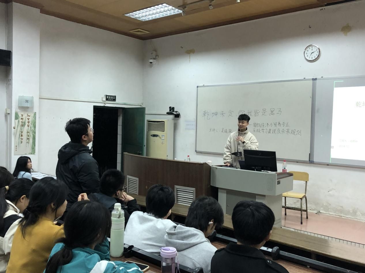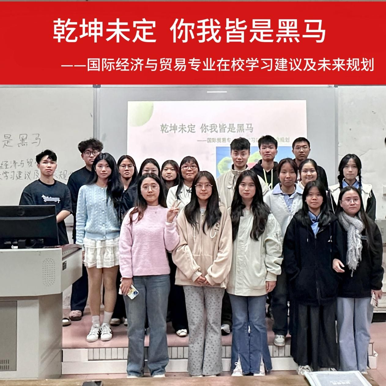在全球经济一体化不断加深的背景下,国际经济与贸易作为连接各国经济的重要桥梁,其重要性日益凸显。随着国际贸易环境的不断变化和新兴市场的崛起,国际经济与贸易专业的人才需求持续增长,对从业人员的专业素养和技能要求也越来越高。为了适应这一趋势,提升国际经济与贸易专业学生的核心竞争力,12月11日,运输与经济管理学院在花都校区16-001举办了“乾坤未定 你我皆是黑马——国际经济与贸易专业在校学习建设及未来规划”讲座。