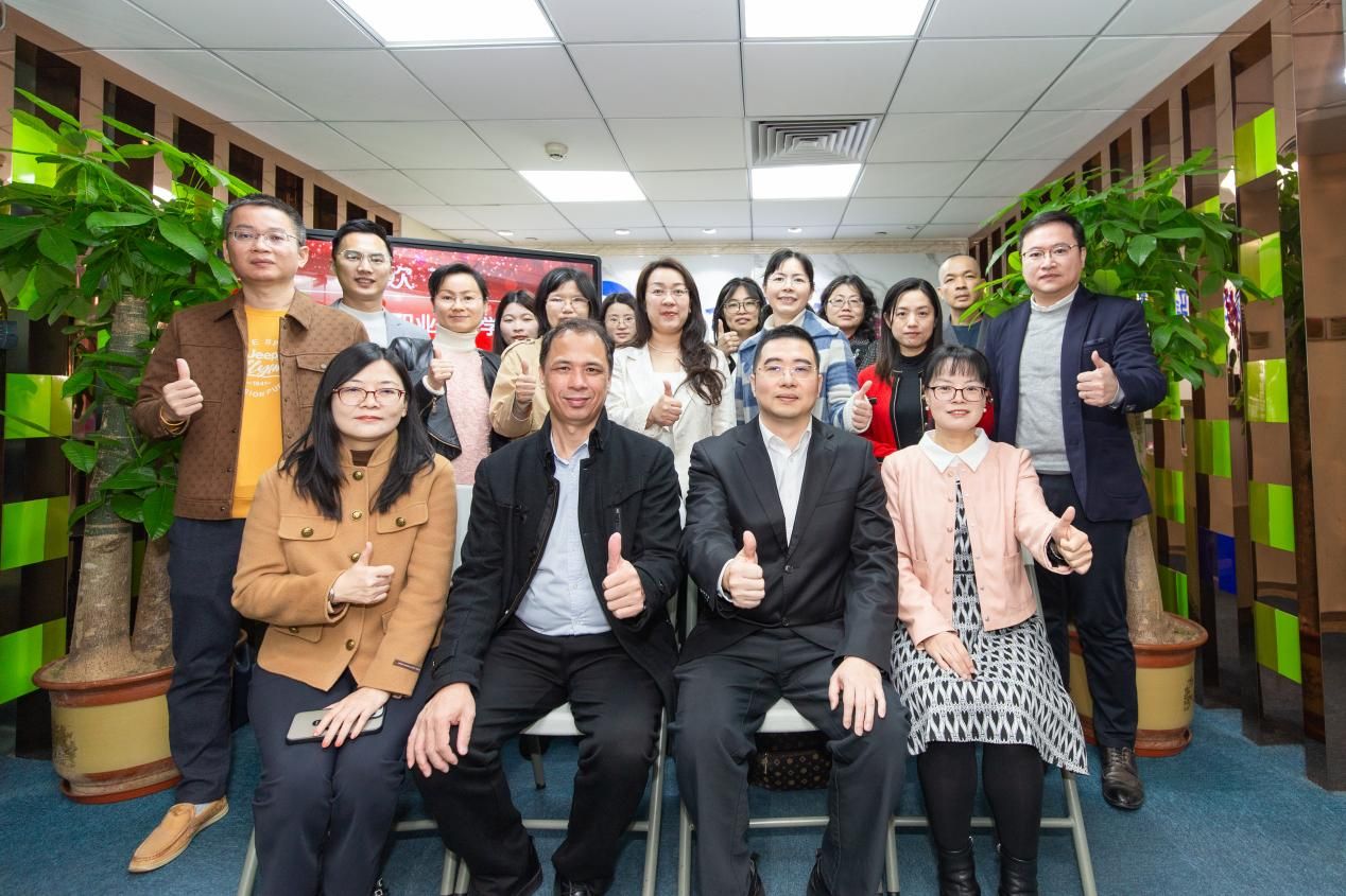 下午,学院一行到访珠海再生时代电商产业园。在总经理李昌恒陪同下,伍雄晖一行参观了园区展厅,深入了解园区运营模式、产业布局及电商人才培养特色。随后,学院一行走访了园区重点企业“老钟驾到”和“京天世纪”,与企业负责人就电商直播运营、跨境电商等岗位技能标准进行深入研讨。座谈会上,校企双方为 “校外大学生实习基地” 揭牌。李昌恒表示,园区将整合企业资源,为学生提供项目孵化、技术攻关等实践平台,并探索校企联合开发“电商直播运营”等模块化课程。