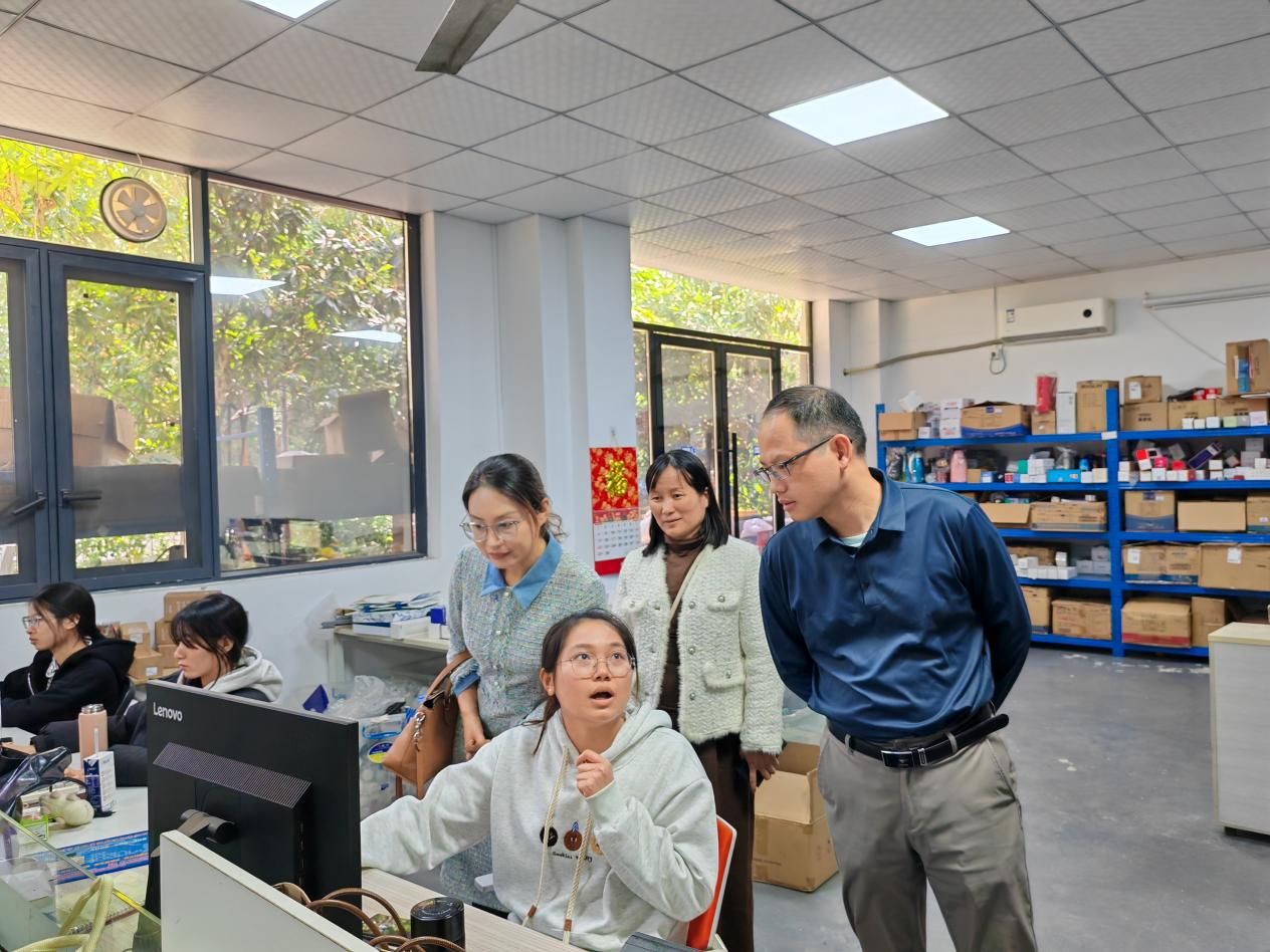 下午,团队前往广州悟力贸易有限公司看望在岗实习学生。该公司为小而美型的跨境电商贸易公司,教师团队现场观摩了企业主营产品、目标市场和运营模式,对在岗学生的薪资待遇、就业前景进行了深入了解,并殷切嘱咐学生努力学习技能、扩展视野,争取在跨境电商领域有所作为。