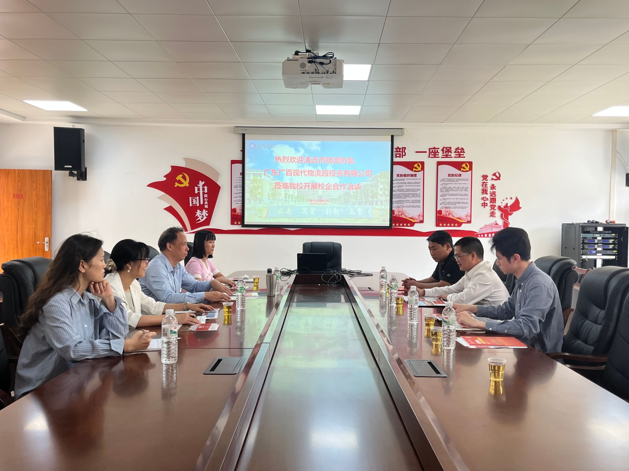 5月22日,运输与经济管理学院在厚德楼301会议室举行校企合作洽谈会。清远市物流协会容庭斌会长、广东富钰供应链科技有限公司负责人应邀来校交流考察。运输与经济管理学院党委书记伍雄晖、院长王龙、党委副书记谢锐琼、副院长赵红英、就业辅导员陈佳参加了会议。