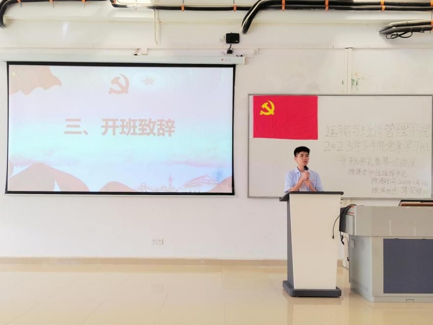 11月6日,运输与经济管理学院2023年下半年党章学习班开班典礼暨第一次党课授课在笃实楼101举行。运输与经济管理学院党委书记伍雄晖、全体辅导员及党章学习班学员出席此次活动。
