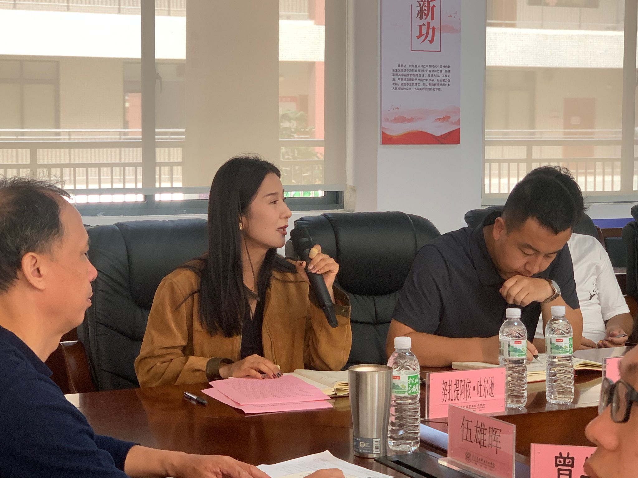 为强化民族团结意识,关注少数民族学生全面发展,11月4日,运输与经济管理学院在厚德楼301召开2024学年下半年民族学生期中座谈会。学院党委书记伍雄晖,少数民族专职教师努扎提阿依·吐尔逊、李江鹏,辅导员曾生峰及各年级少数民族学生代表参与了此次座谈,会议由古丽孜巴·帕塔尔主持。
