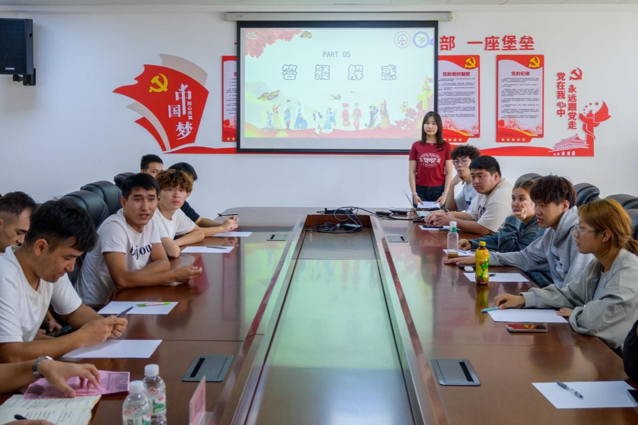 答疑解惑环节中,同学们积极提出问题,学院领导和老师们认真倾听,并就课程设置问题和生活上面临的困难,一一给予详细、耐心的解答。李江鹏老师发言强调,大家应该团结一心,共同营造民族团结的和谐校园文化氛围。