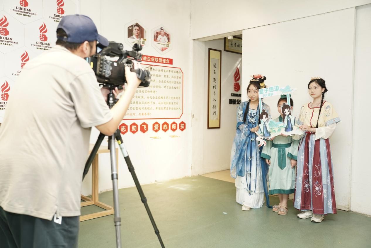 新闻媒体拍摄广交职院学生充当国学文化使者与学员合照