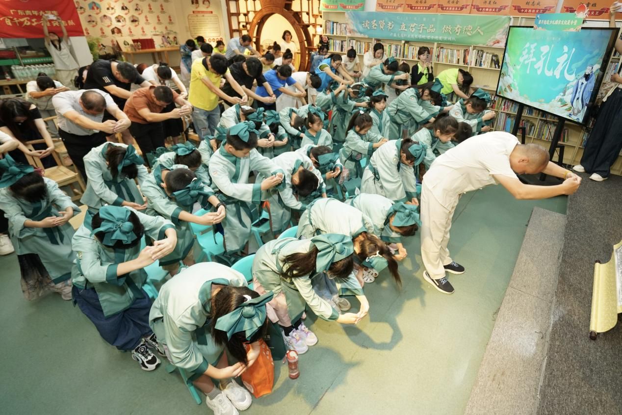 活动特设了“拜孔礼”环节,孩子们身着传统汉服,恭敬地向孔子像行礼,表达了对先贤智慧的崇敬之情。全体参与人员共同宣读了“君子德道行动誓词”,承诺积极践行儒家精神,努力提升自己的道德品质。此外,活动还发起了“君子日行一善”行动倡议,鼓励孩子们在社区中积极行善、传递正能量。这一倡议得到了现场家长和孩子们的热烈响应。