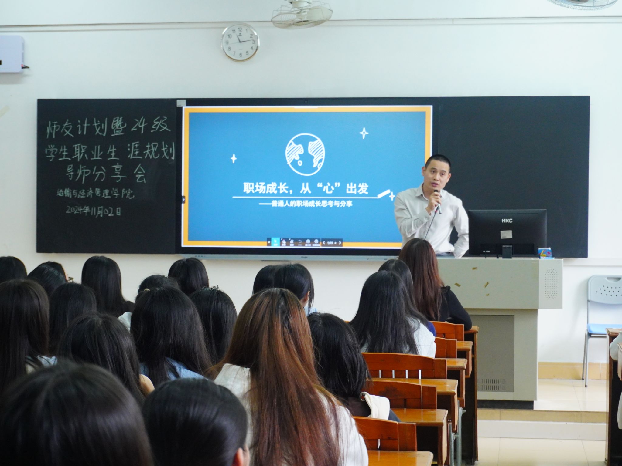 为引导学树立正确的职业观、择业观和成才观,提升人才培养质量,11月2日上午,运输与经济管理学院在花都校区16栋208和清远校区厚德楼319举行了“师友计划”暨校友故事分享会,运输与经济管理学院党委副书记谢锐琼,副院长赵红英,大数据与会计专业负责人李伊泠,综合办主任吴双芳,教务员曾秋菊以及辅导员老师参加了本次活动。