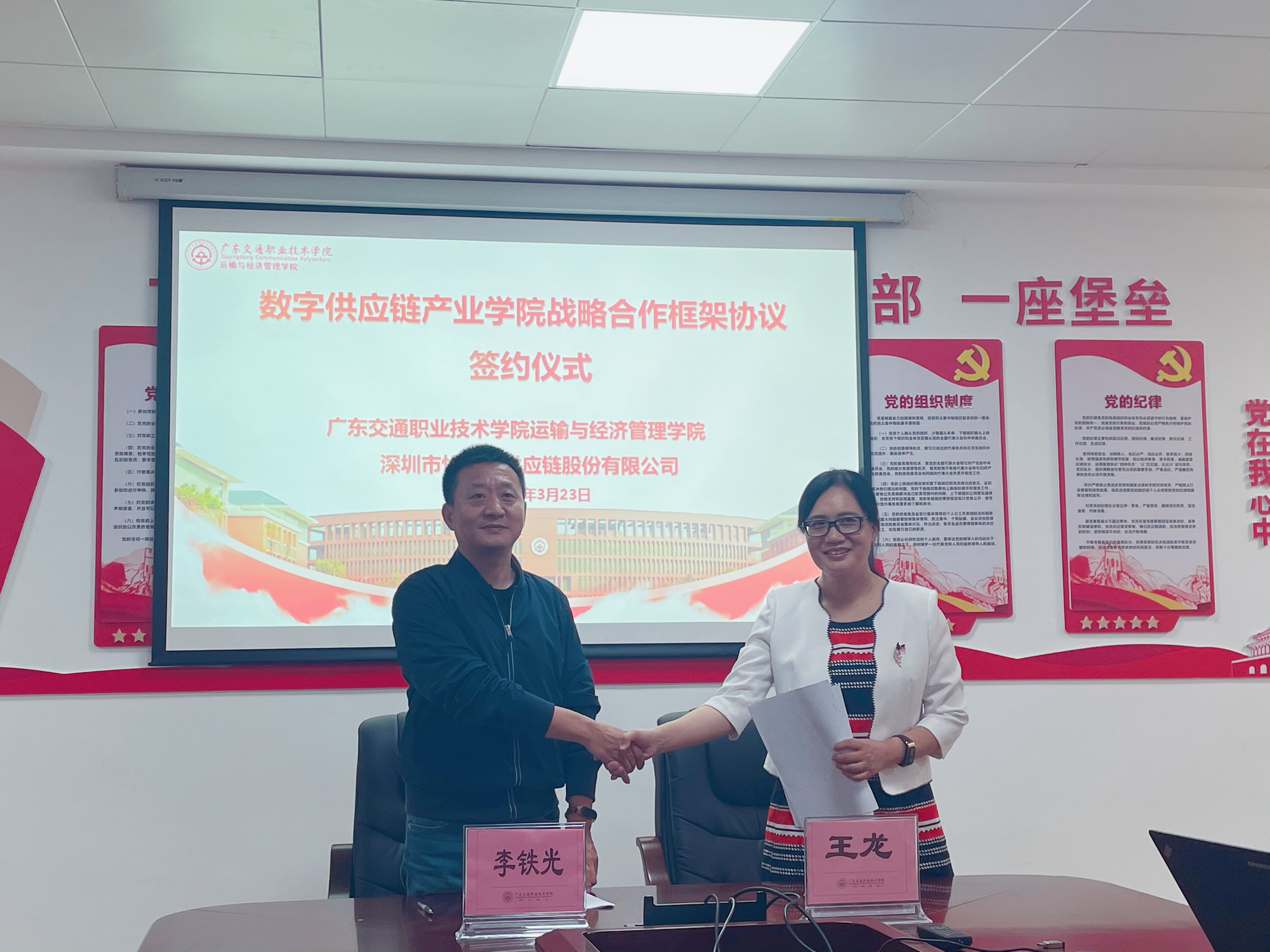 会上,学院与怡亚通正式签订了校企合作战略框架协议。这是学院继2020年与怡亚通合作举办物流管理、电子商务、连锁经营管理专业现代学徒制班后校企合作的进一步深化。