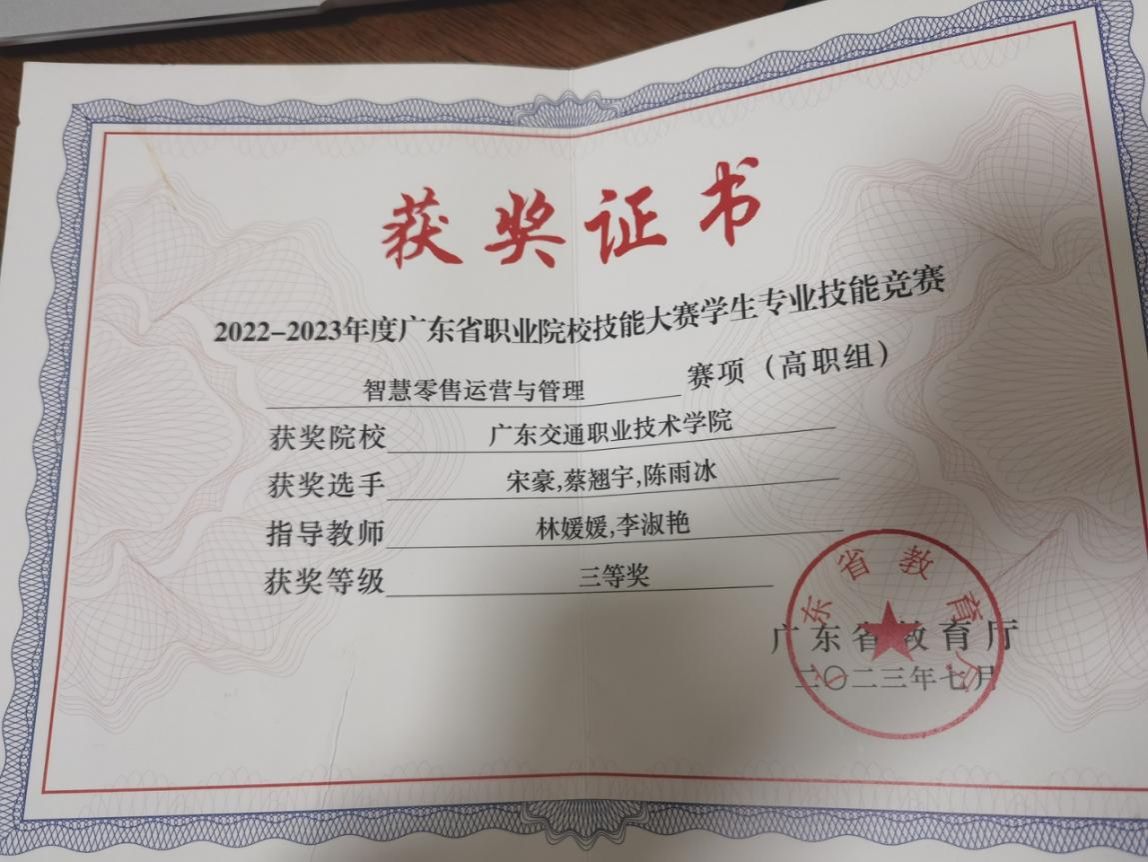 2022-2023广东省职业学院校技能大赛智慧零售运营与管理赛项三等奖