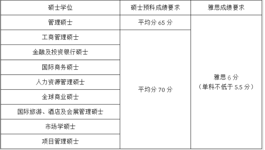 备注:根据英国学生签证要求雅思成绩需达到5分以上,未达到6分者,在大学开始进入硕士专业课程学习前,在英国学习6~12周的语言课程。