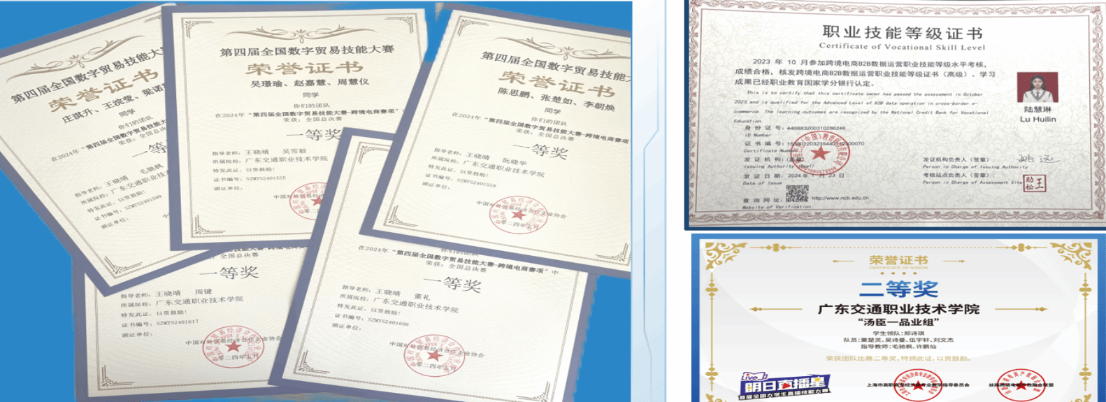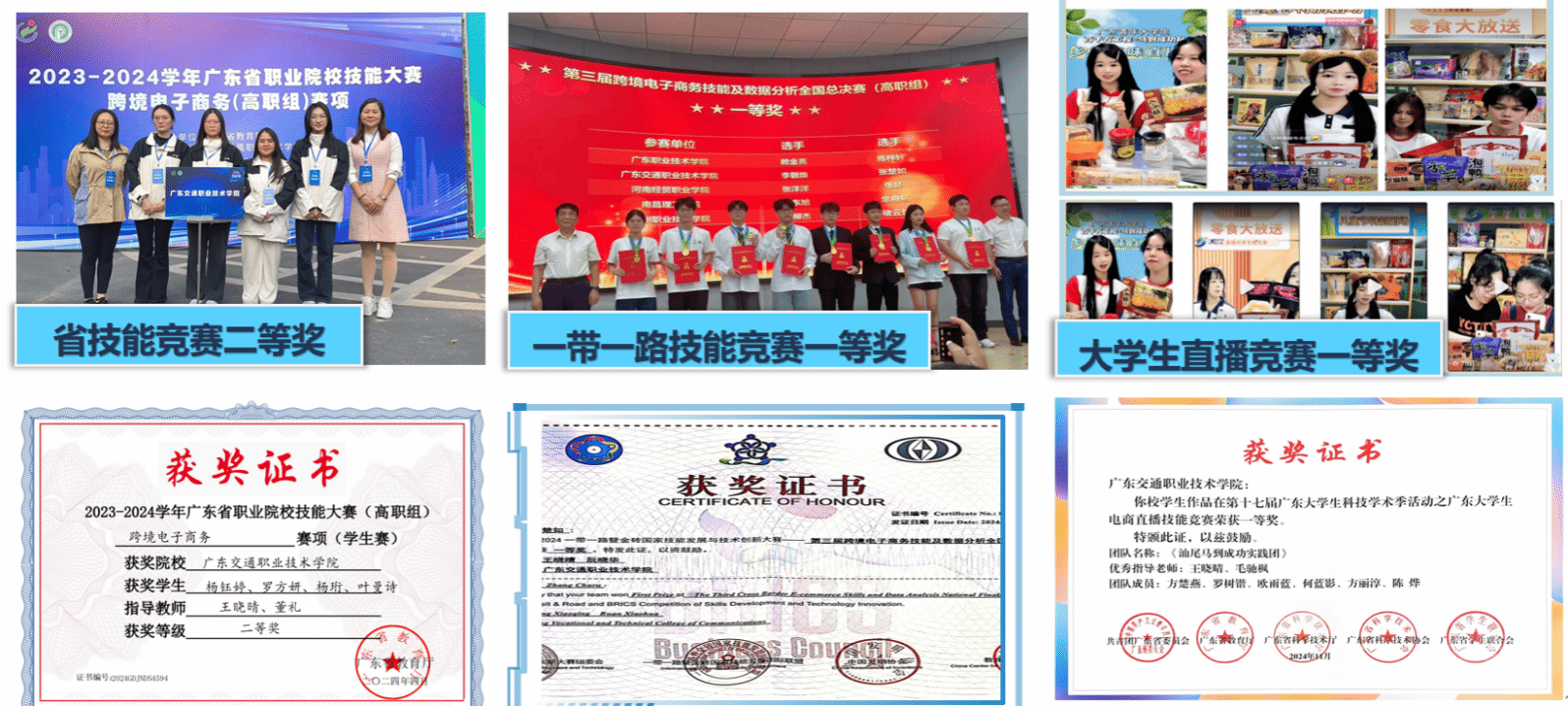 鼓励学生参加各类政府和商业协会举办跨境电子商务、国际贸易、电商运营、物流报关能等专业技能竞赛。依托省、国家级各类创新创业竞赛、全国和省高职院校技能大赛平台,选拔培训学生参加全国职业院校技能大赛等高水平的专业竞赛,以赛促学,以赛促教,并力争获得高等级奖项,通过参与技能竞赛,提升学生专业技能。