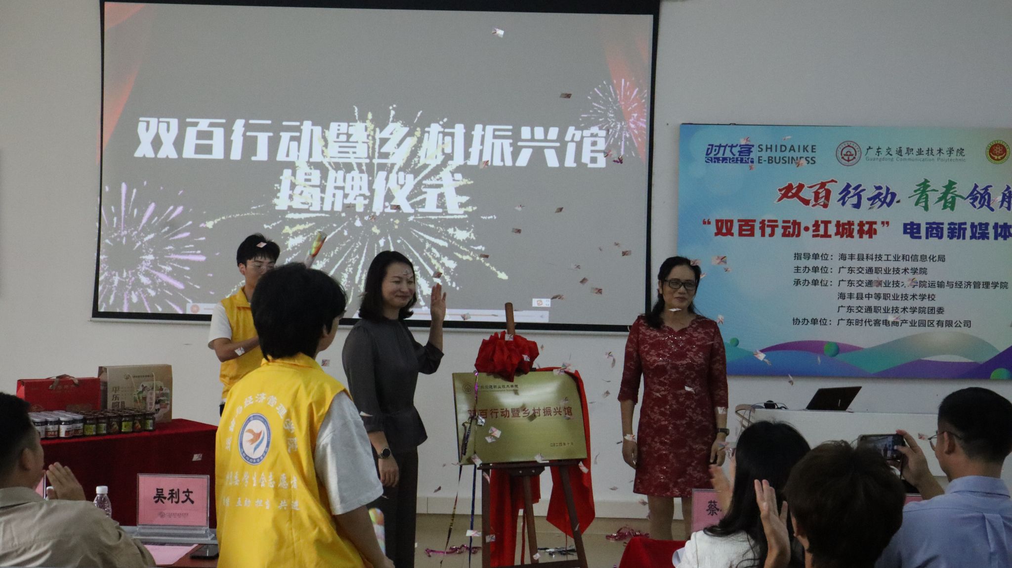 近日,学院“双百行动”电商新媒体营销推广大赛启动会暨乡村振兴馆揭牌仪式在清远校区成功举办,花都校区分会场和海丰市中等职业技术学校分会场同步举行。学院副院长熊嘉逸、党委组织部部长安丰田、团委书记王铿崎,运输与经济管理学院党委书记伍雄晖、院长王龙、副书记谢锐琼、副院长蔡善文等出席了启动仪式。运输与经济管理学院团委、各专业带头人及海丰市中等业职业技术学校领导和专业教师分别参加主会场和各分会场活动。