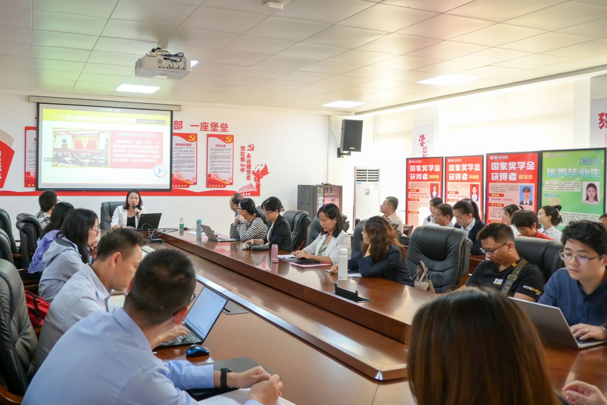 熊嘉逸从“党的二十届三中全会精神内涵”“勇立潮头看进一步全面深化改革中的广东实践”“从全国教育大会精神中弘扬和践行教育家精神,打造高水平职业教育师资队伍”三个方面展开宣讲,为扎实推动党的二十届三中全会精神在学院落地落实,以改革精神推动学院事业高质量发展提供了有益的思想启迪和方法指引。