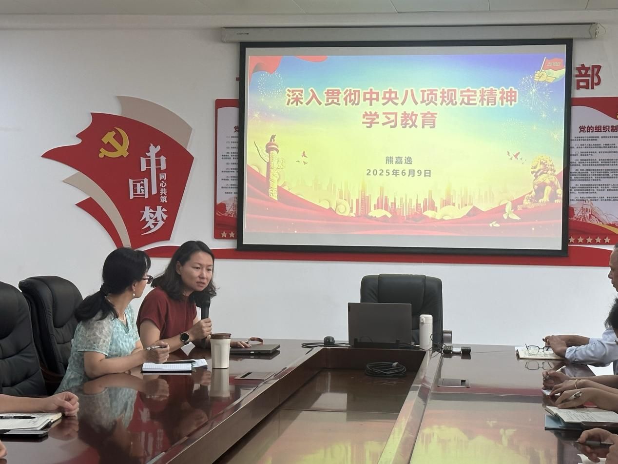 熊嘉逸以《深入贯彻中央八项规定精神,助力学校高质量发展》为题,从中央八项规定的历史渊源、主要内容、重要意义和违反中央八项规定精神的主要表现等方面讲授专题党课。她指出,中央八项规定精神是新时代全面从严治党的重要法宝,也是新时代党的建设新的伟大工程的重要组成部分,是党员干部修身立业的行为准则。她结合学院中心工作交流了认识体会,强调要紧紧围绕“学精神、强作风、促发展、作先锋”,推动干部师生以新气象、新担当、新作为实现学院事业高质量发展贡献力量。