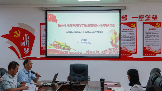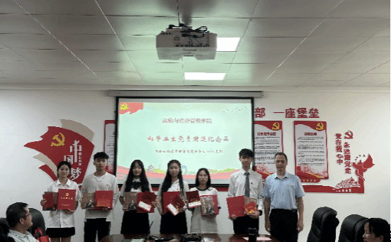 伍雄晖围绕“《中国共产党纪律处分条例》149条负面清单”为毕业生开展“清廉课堂”党纪学习教育专题党课,严明政治纪律和政治规矩,要求毕业生党员把遵规守纪刻印在心,内化为言行准则。伍雄晖、谢锐琼分别为毕业生党员送上“政治生日卡”,并举行“赠书予人 手留余香”赠书仪式,期望大家在以后的生活中能够牢记党员身份,永葆初心底色。
