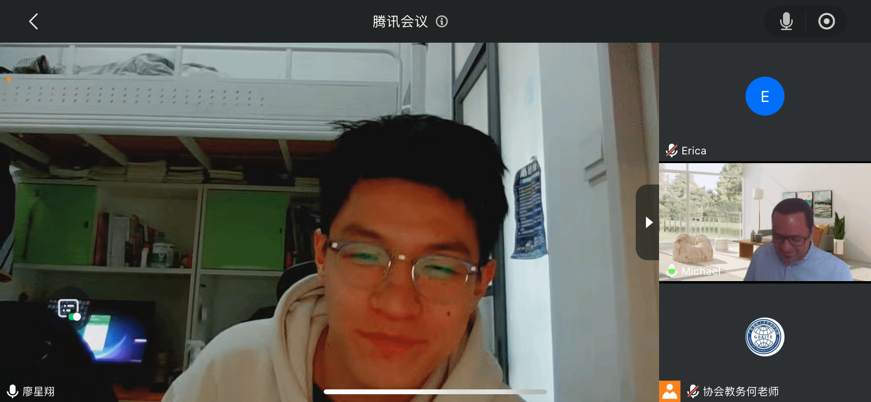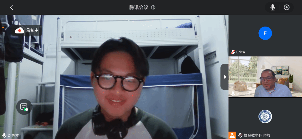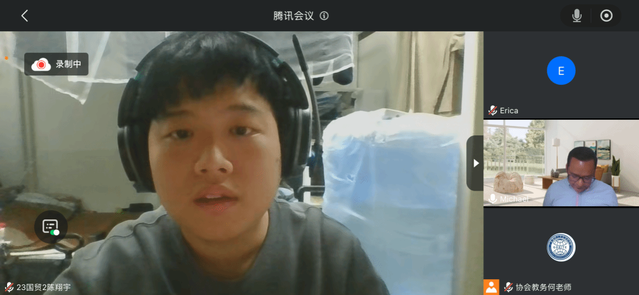 活动采取线上会议模式,同学们按照规定时间分批进入会议等候室签到,并依次进入会议室与外教进行一对一口语交流。外教Michael按照赫特福德大学语言内测的标准,为每位同学随机抽取三到四个问题进行提问,同学们需用英语进行完整表达,锻炼在真实考试场景下的应变能力和语言组织能力。在完成正式问答环节后,同学们还可以自由与外教交流,进一步提升口语表达的流畅度,并获得针对性的指导建议。