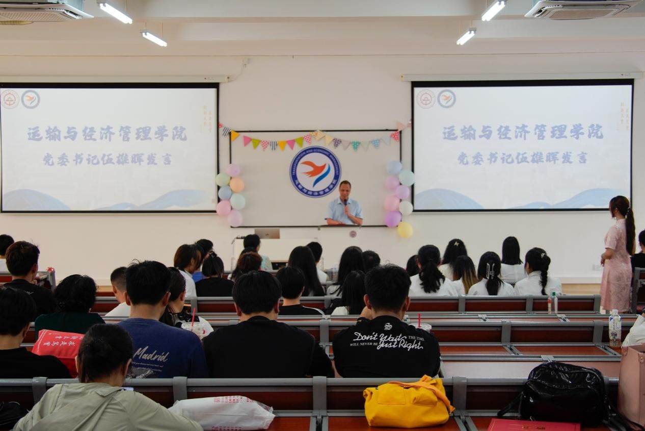 典礼在庄严的国歌声中拉开序幕。运输与经济管理学院舞蹈团的活力舞蹈《我的未来式》,以跃动的身姿点燃全场热情。副院长赵红英深情致辞,她细数学子们在校求学的点滴成长,勉励大家坚守理想、勇担时代责任,在人生新赛道上跑出最好成绩。党委副书记谢锐琼宣读了优秀学生干部表彰决议,现场颁发了“优秀学生干部”荣誉证书及“校友联络员”聘书,表彰先进,凝聚情谊。