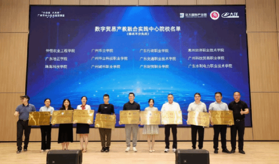 会上,各方单位负责人分别就数字贸易行业发展现状和趋势、人才需求、校企合作新路径、数字贸易产业学院模式等进行了分享。揭牌了“跨境电商产业孵化器”、“数字贸易产教融合实践中心”和“数字贸易(海外仓)选品中心”。我院获“数字贸易产教融合实践中心”授牌,王龙院长获“产教融合卓越贡献奖”,国际贸易专业带头人陈伟芝和跨境电商专业带头人王晓晴获“产教融合精英奖”。