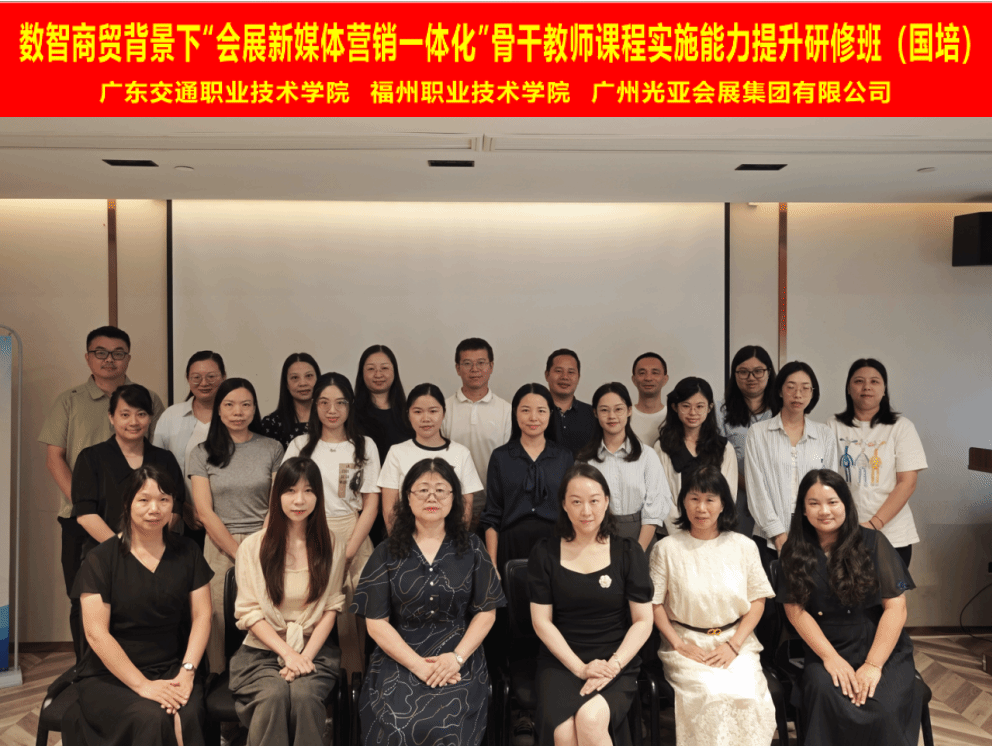 7月20日,2025年高职数智商贸背景下“会展新媒体营销一体化”骨干教师课程实施能力提升研修班(国培)结业典礼顺利举行。福州职业技术学院文化旅游学院会展专业郑晓星主任、广东交通职业技术学院项目负责人曾艳英教授和运输与经济管理学院综合办吴双芳主任和全体学员出席典礼。典礼由福州职业技术学院文化旅游学院会展专业骨干教师黄可筠主持。