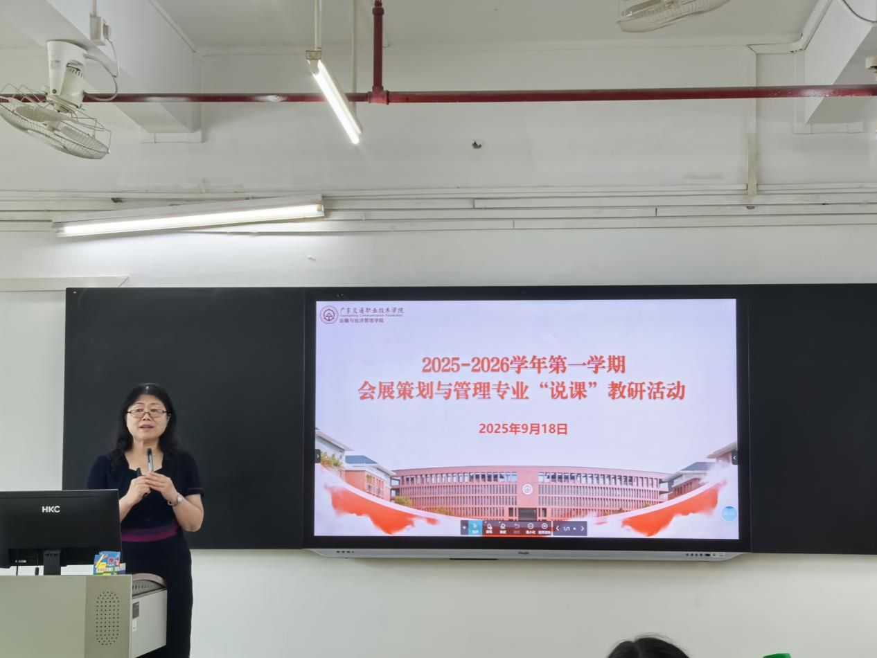 为进一步深化教育教学改革,推动会展策划与管理专业课程建设与课堂教学创新,9月18日下午,会展专业在花都校区1-302教室成功举办2025-2026学年第一学期“说课”教研活动。本次活动历时两个小时,11名专业教师依次说课,围绕课程设计、教学方法及教学反思等方面展开深入交流。