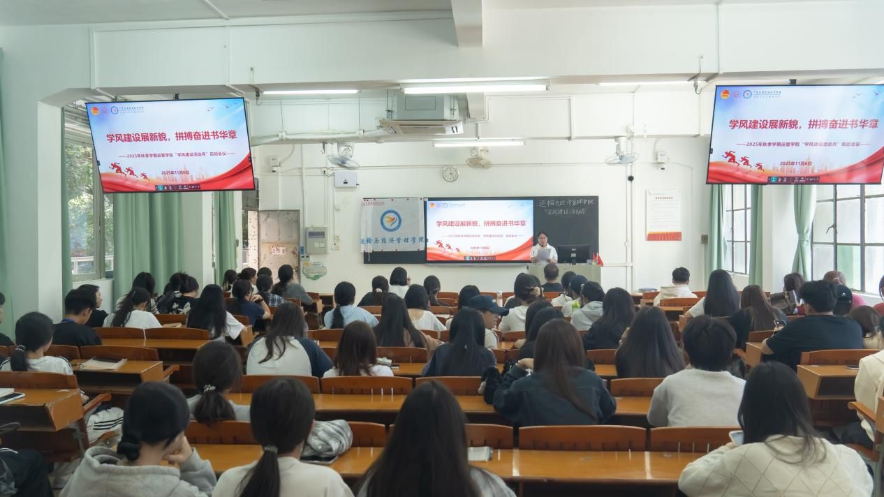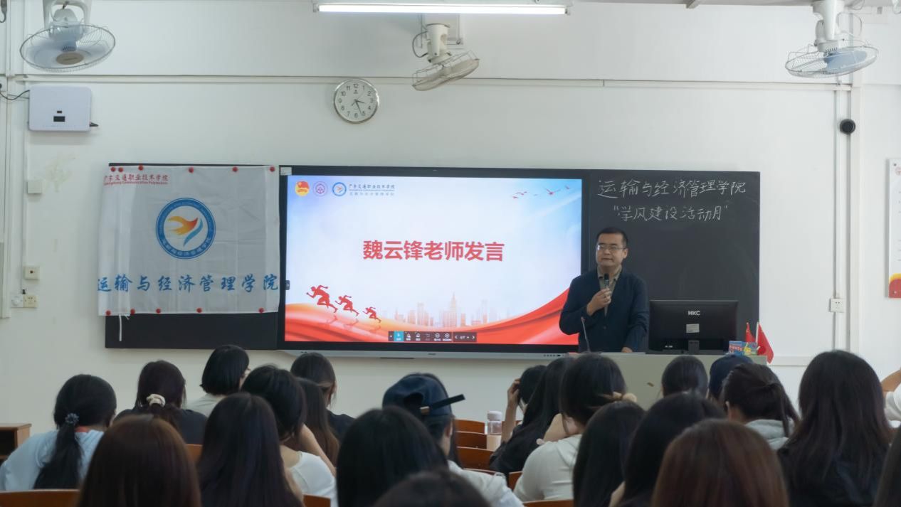 11月6日,运输与经济管理学院(花都校区)在16栋208举行2025年秋季学期学风建设月部署启动会议,学院党委书记伍雄晖、副书记谢锐琼、辅导员老师及全体团委学生会部门负责人、团支书、纪律委员出席会议。