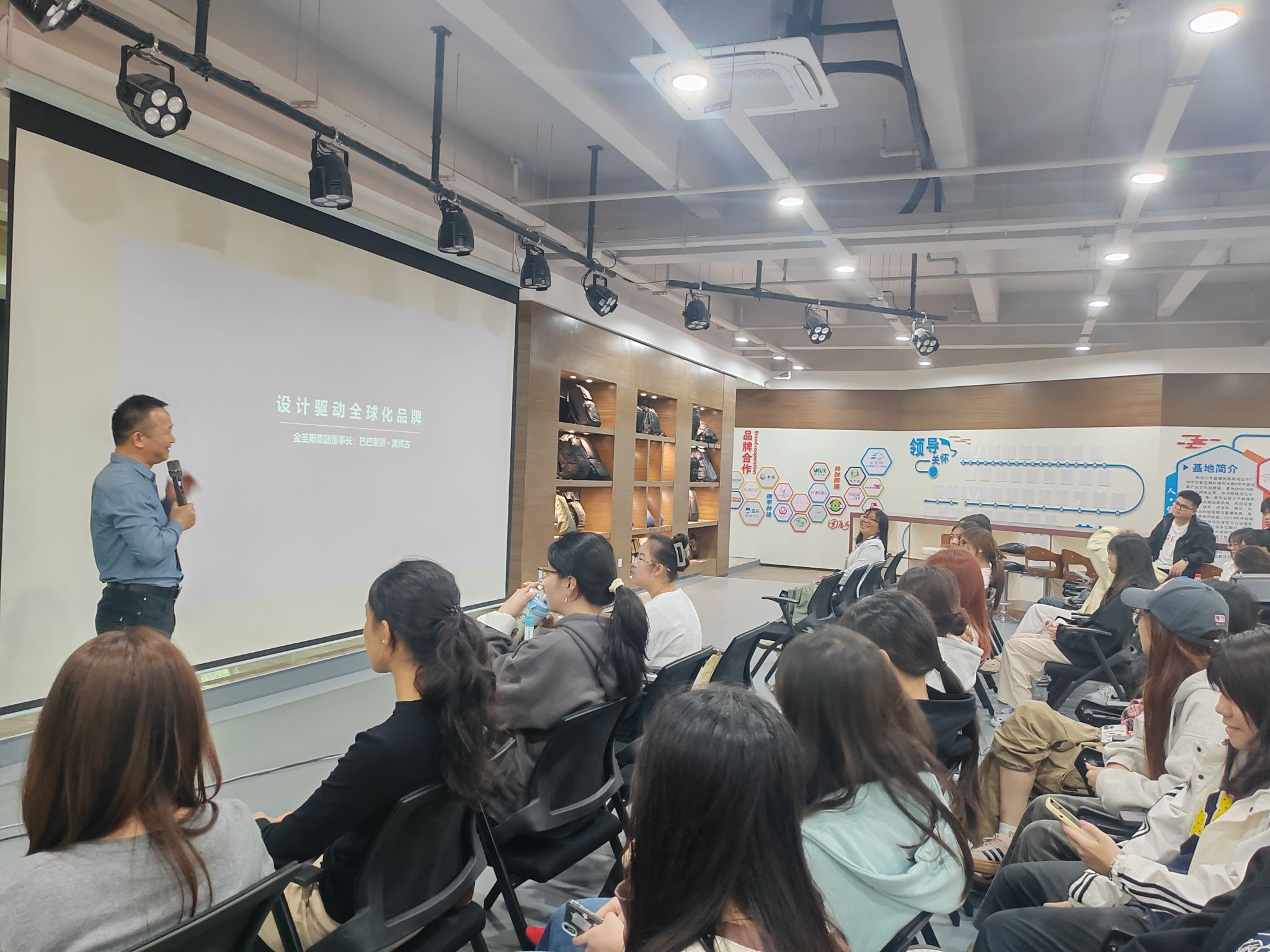 金圣斯集团董事黄辉古为师生带来《设计驱动全球化品牌》专题讲座。他结合实战案例,从“创新设计、中国智造、全球销售”三大维度,系统阐释了企业如何以设计为核心,整合全球资源,推动箱包与新技术、新材料的融合,打造具有国际竞争力的轻科技产品。