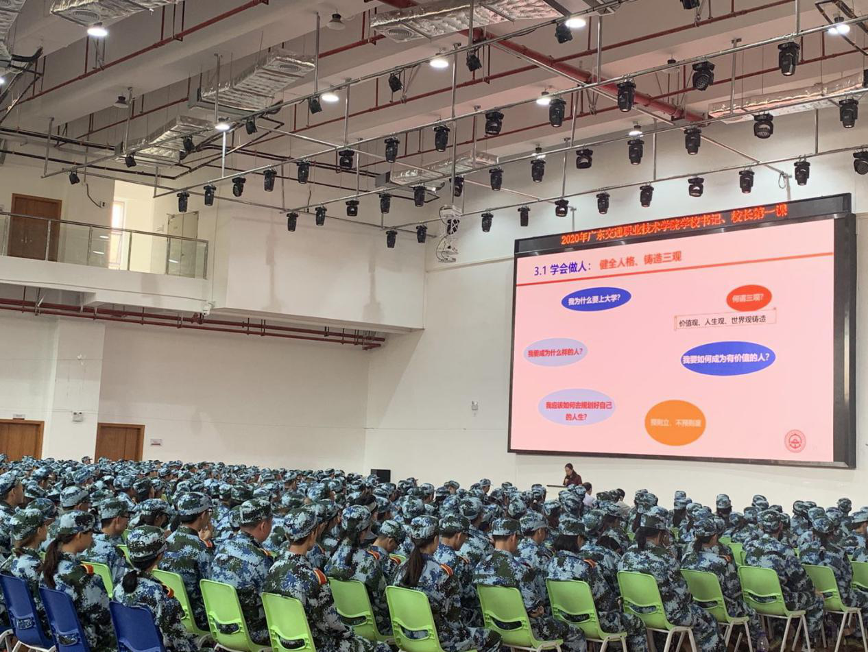 余书记带领新生们领略了广交院的校史校情,结合交通行业特色向新生们绘就了生涯蓝图。她提到,交通行业是经济社会发展的基础与先导,学校紧跟粤港澳区域经济发展和综合交通运输体系建设步伐,走内涵发展、开放融合之路,聚力培养具有创新精神的技术技能人才。接着,余书记结合学校人才培养工作实际,以学校办学成绩和优秀校友等素材循序诱导,通过丰富生动的创业实例以及学校文化素质教育品牌,寄语新生们要珍惜广交人的荣誉,努力拼搏奋斗,勤学善思、练就本领、厚德敬业。