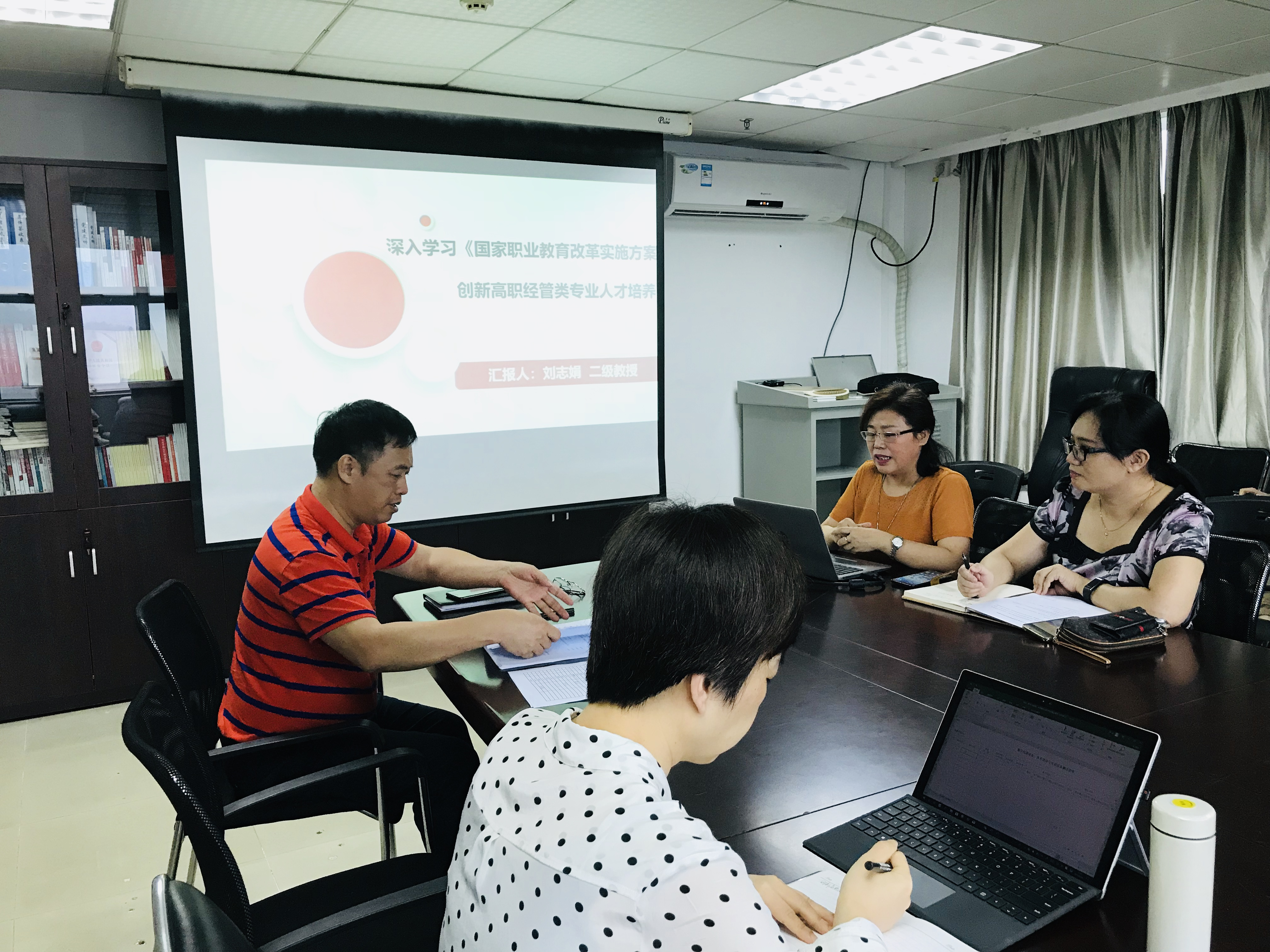 学院专业群带头人、二级教授刘志娟做了《深入学习< 国家职业教育改革实施方案>,创新高职经管类专业人才培养》研讨报告。她结合学院专业群建设的工作实际,围绕《国家职业教育改革实施方案》的主要内容,对《方案》中构建职业教育国家标准、促进产教融合校企“双元”育人、加强职业教育办学质量督导评价等几个方面内容进行解读,并围绕探索构建高职经管类专业学历资历框架、探索建立经管类特色专业标准和课程标准、探索构建产教融合校企“双元”育人模式三方面与广大教职工进行探讨。她提到,职业教育国家教学标准是基本标准,体现了国家对职业教育教学的基本要求,具有引领性和指导性,我们要在深入剖析当前经管专业教学标准现状的基础上进行特色创新。