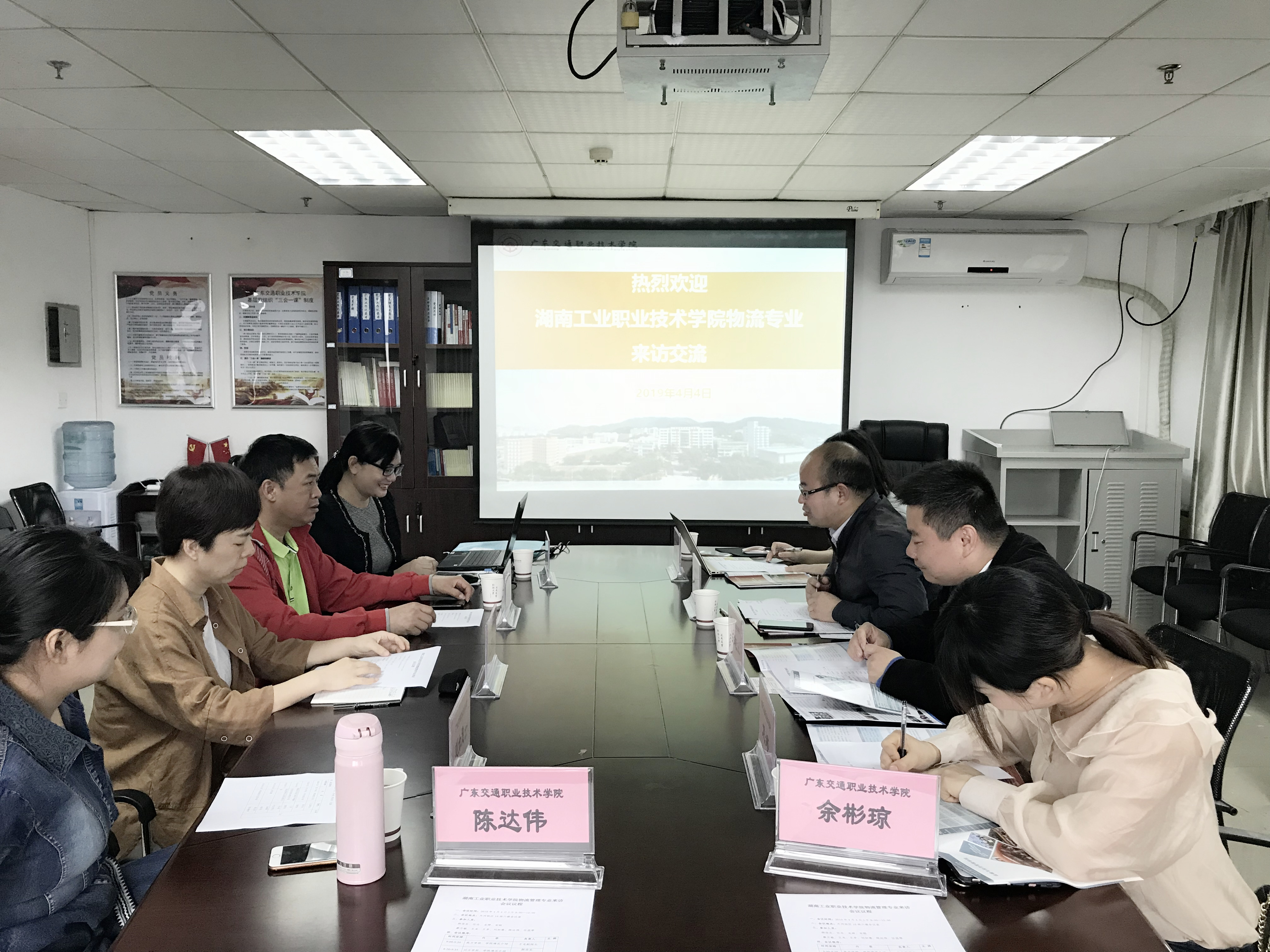 2019年4月4日上午,湖南工业职业技术学院物流管理专业带头人颜浩龙副院长、物流管理专业主任任志一行4人来我院调研交流。运输与经济管理学院党总支书记廖万敏、副院长王龙、副院长王芳、物流管理专业负责人刘如意等热情接待了来访嘉宾,双方围绕物流管理专业建设、实训室建设、校企合作等事宜进行了分享交流。