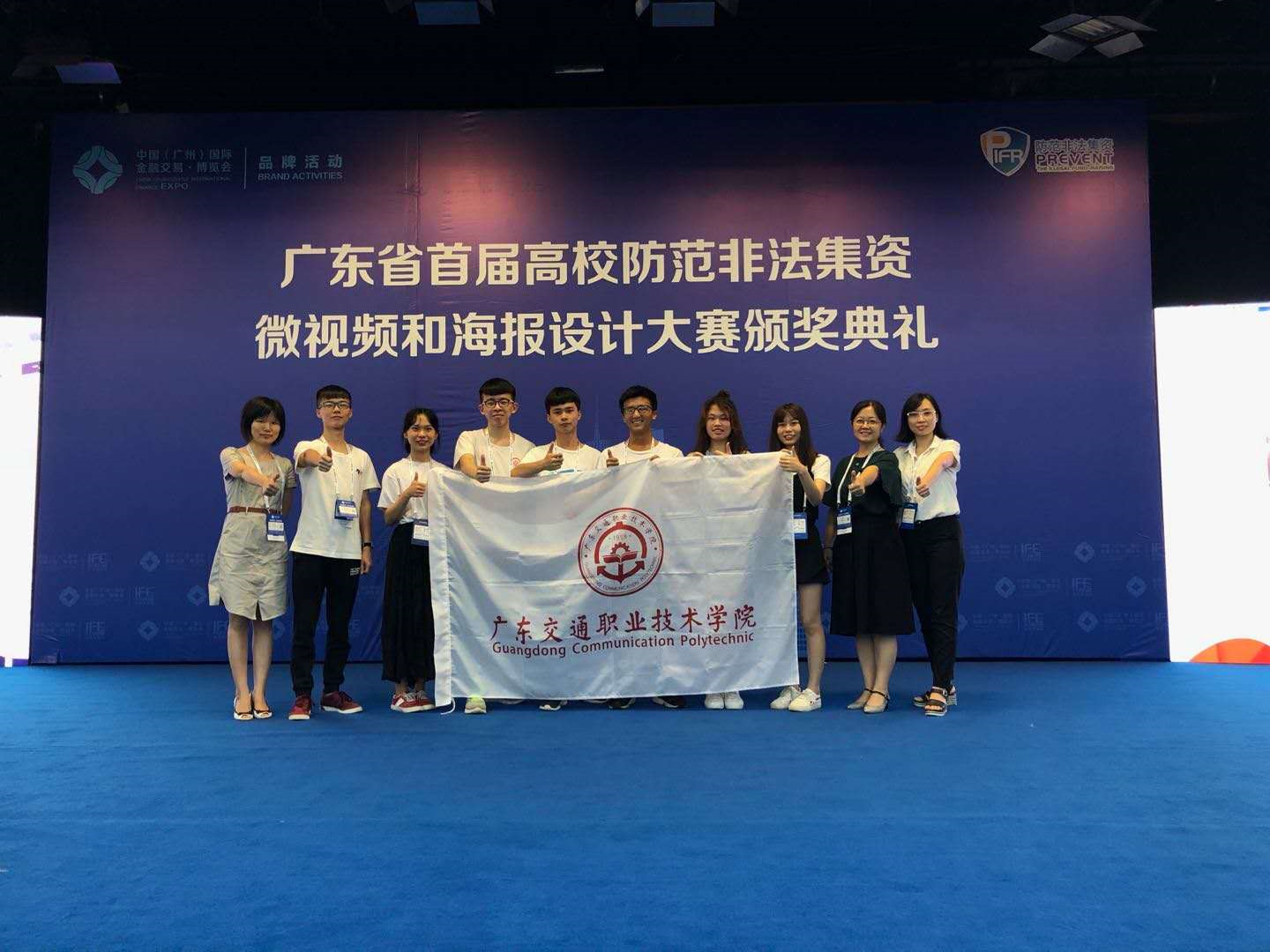 6月22日,我校会展专业师生在广东省首届高校防范非法集资微视频和海报设计大赛颁奖典礼上,摘得二等奖,最佳人气奖以及优秀奖。