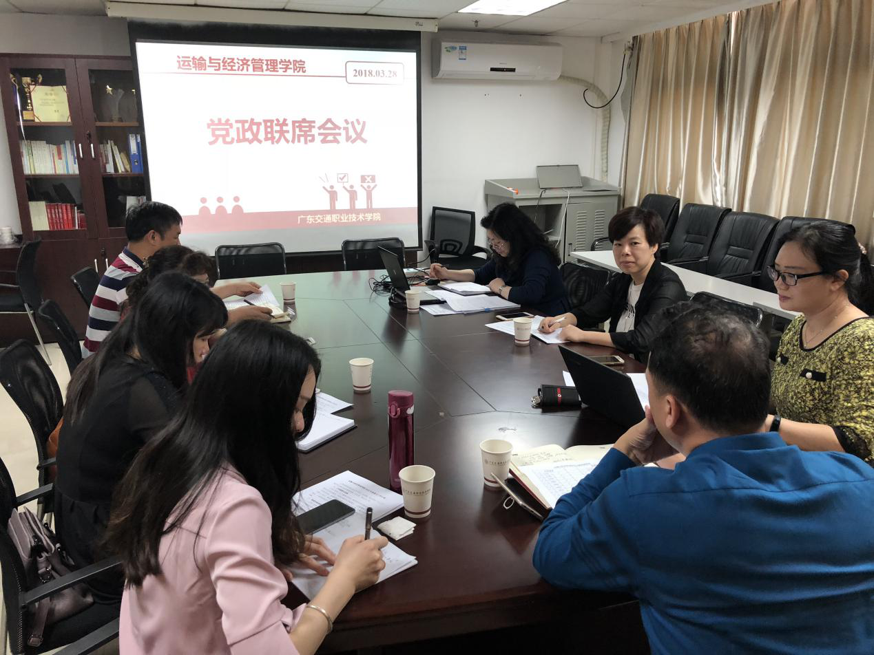 为深入学习贯彻党的十九大精神,助力推进“创新强校工程”和一流院校建设,3月28日上午,运输与经济管理学院召开了2018年第三次党政联席会议。会议由院长曾艳英主持。