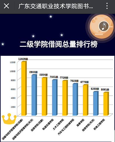 数据:2017年度运输与经济管理学院图书借阅数量全校第一,远远高于其他学院,为建设“书香班级”打下良好基础。
