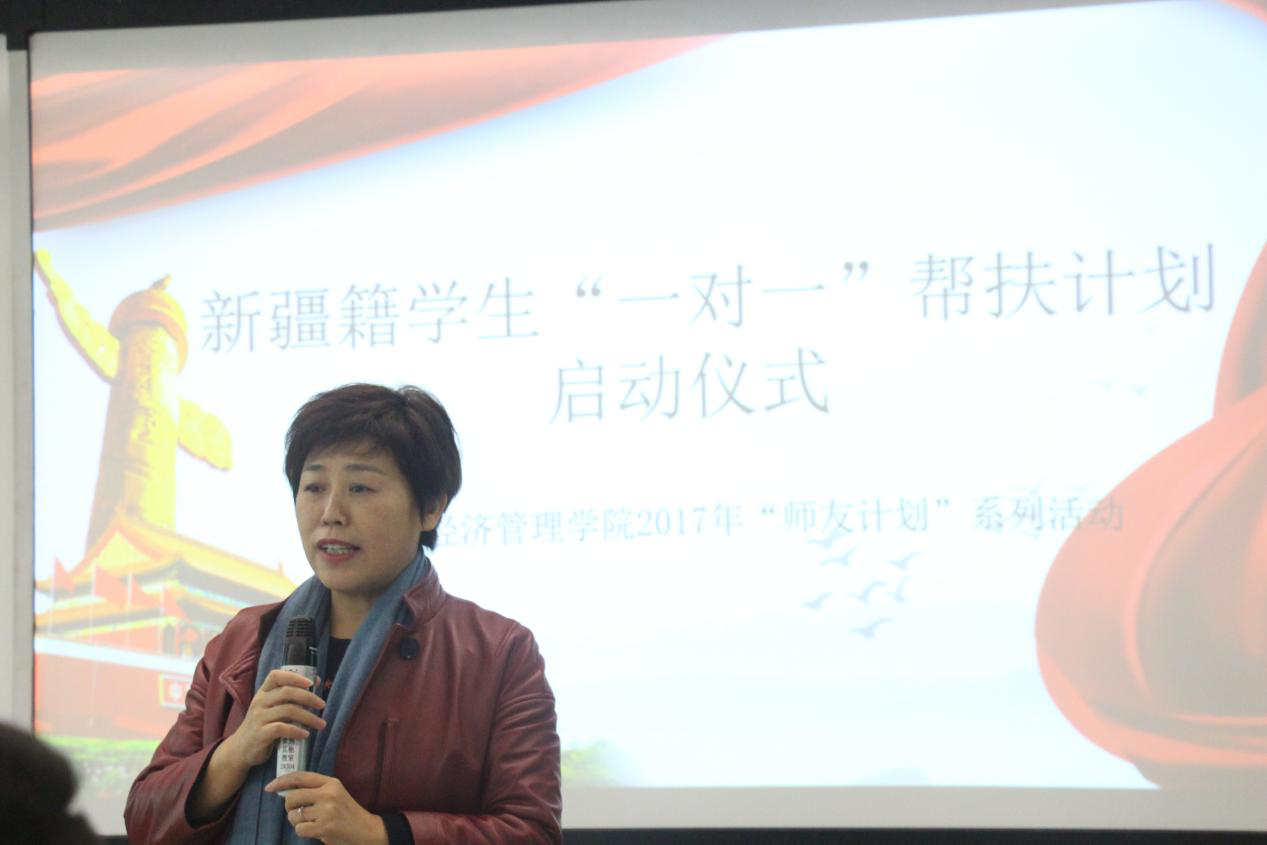 首先,廖万敏对结对帮扶活动做动员讲话。作为新疆学生人数最多的二级教学单位,运输与经济管理学院高度重视民族生的管理工作,始终围绕立德树人根本任务,以新疆学生的全面发展为目标,以教育引导和情感关怀为主要形式,不断探讨和实践民族生的教育培养工作。廖万敏提到,学院将建立学生骨干,尤其是学生党员与新疆学生“一对一”精准帮扶和联系制度,分别对24名新疆籍同学进行学习、生活、语言、思想和情感等方面的结对帮扶。同时,要把结对帮扶当做一项思想政治工作认真加以落实。