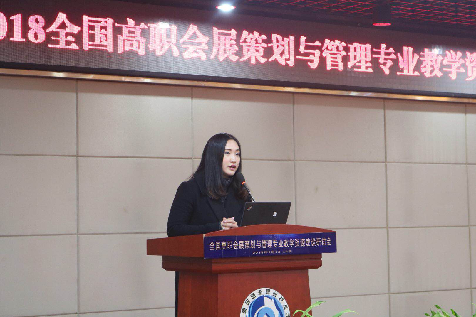 会上,曾艳英教授就《广东交通职业技术学院会展专业建设情况》作出精彩汇报,从专业基本状况、十年建设经验以及专业发展新特色三方面对本校会展专业进行了介绍;陈颖老师以《职业教育会展专业资源库的构建与开发》为题发表演讲,分享以专业教学资源库推进会展教育领域的协同联动,创新人才培养模式,提高人才培养质量的建设经验。