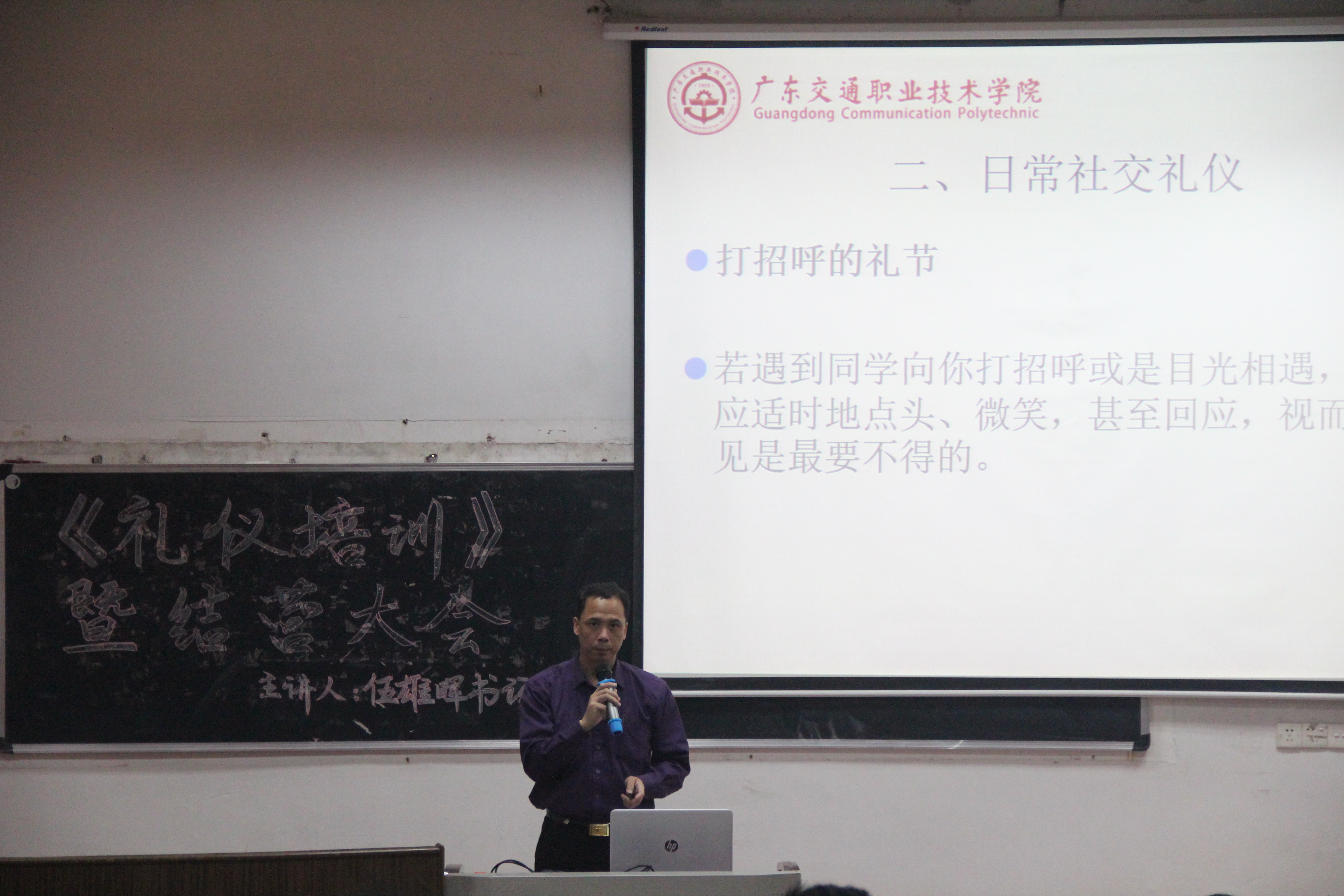 2017年11月31日,运输与经济管理学院面向16、17级全体学生干部在16栋001举办了礼仪培训和新生干部训练营结营大会。